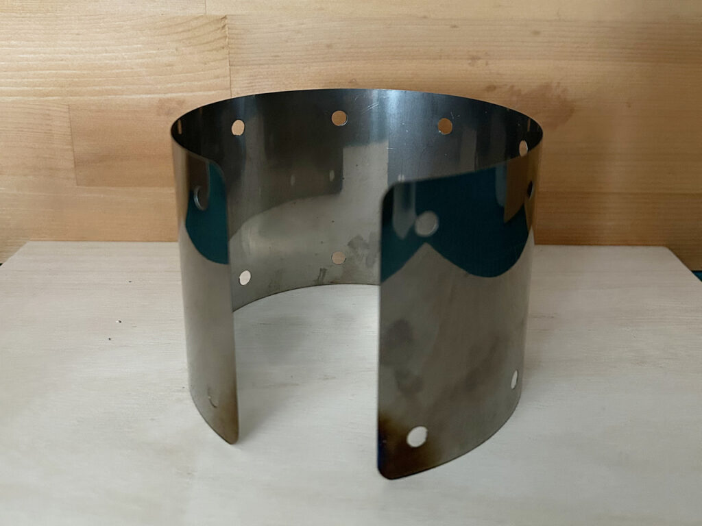 C型で自立する風除け兼リフレクター、300mlカップに巻きつけて収納することでカップのガタつきが無くなります。アルコールストーブにはウインドスクリーンは必需品です、確実にストーブの効率を高めます。